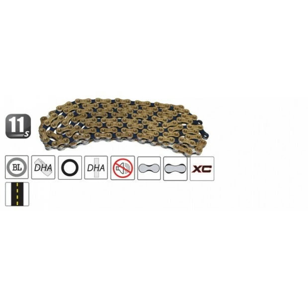 La chaîne Yaban S11 S2 bi-color est une chaîne 11 vitesses souple et silencieuse grâce à ses rivet à axes en chromium, offrant également robustesse et légèreté. Polyvalente, cette chaîne est compatible vélo de route et VTT.